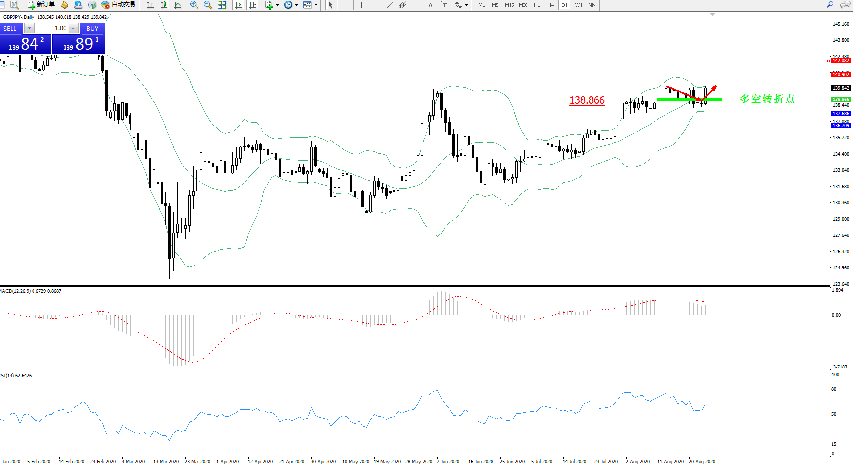 交易策略:138.866上方看涨,目标140.902、142.082