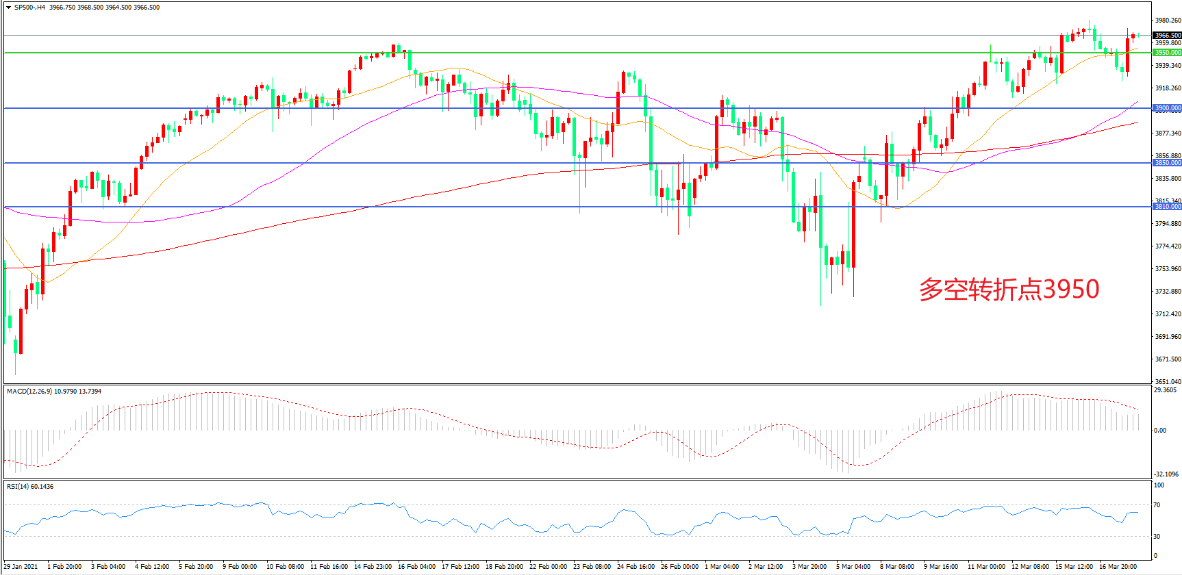 周三(3月17日),美联储扮演了本周三美股和美债的救世主!在美联储公布决议前,因科技股带头下行,标普500指数保持跌势,随后美联储公布了FOMC利率决议、政策声明及经济预期,鲍威尔重申宽松立场和保持当前QE购债直到经济有明显进展的承诺,市场风险情绪受到提振,标普500大幅拉升,收报3967.50点。