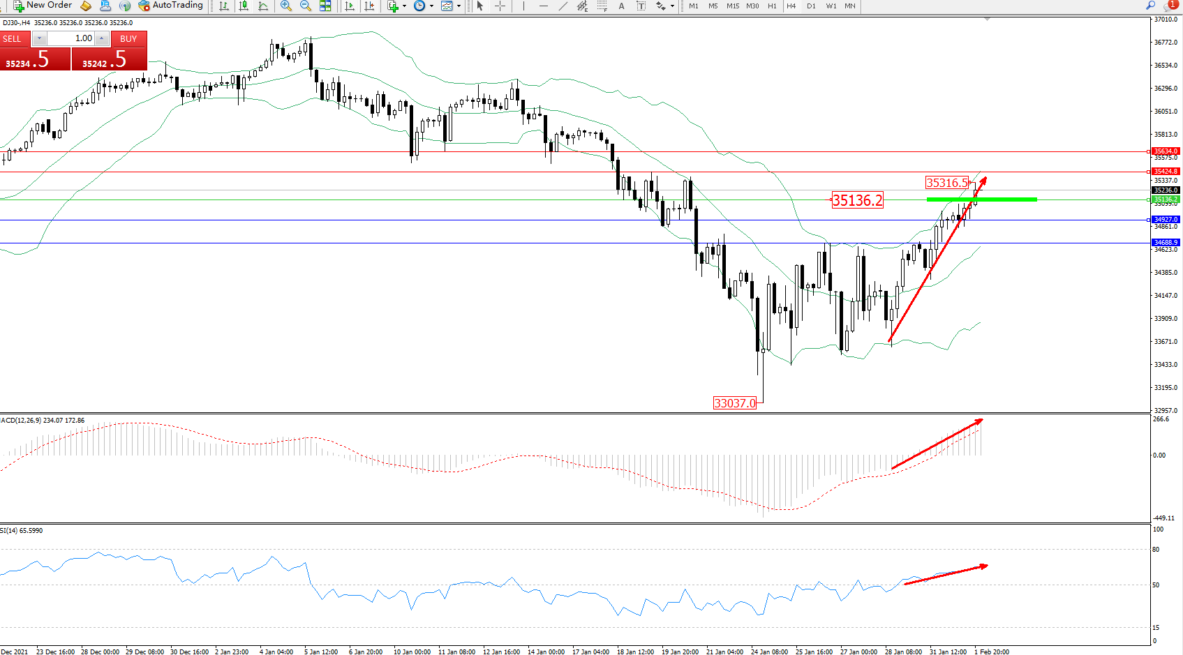 道琼斯指数2月1日(周二)收盘上涨272.00点,涨幅0.77%,报35403.86点; 美股收盘,三大股指尾盘冲高收涨,美国圣路易斯联储主席布拉德希望美联储在3月和5月会议上加息,但其淡化了加息幅度大于预期可能带来的益处;布拉德表示,我不认为加50个基点对我们有什么帮助,至少今天看是如此,真不觉得会有什么助益,我想我们可以采取一种有纪律的方式来提高政策利率,市场已经有了预期。他倾向于在第二季度开始缩减美联储资产负债表。其认为,缩表的影响以及加息意味着美联储在对抗通胀方面没有落后。但是对于美联储是否需要将货币政策转入“限制性”领域以降低通胀压力,布拉德认为这是一个“有待商榷的问题”。他预测今年失业率将低于3%。
