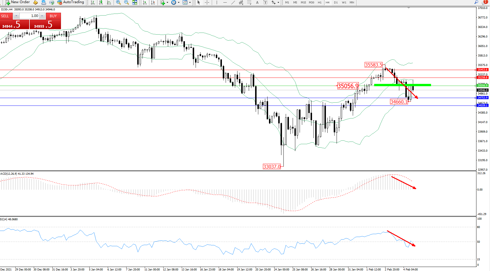 道琼斯指数2月4日(周五)收盘下跌21.42点,跌幅0.06%,报35089.74点;受亚马逊财报引发的看涨情绪提振,美国股市周五收盘走高。数据显示,美国非农就业岗位1月增加46.7万个。12月数据上修至增加51万个,前值为增加19.9万个。虽然遭遇疫情等逆风因素,但美国1月份新增非农就业人数超过所有经济学家预期,平均时薪也环比增长0.7%。就业报告出乎所有人的预料,这份数据无疑表明经济向好,但对市场不利,因为它给美联储采取更激进的鹰派行动提供了支持。本周市场波动剧烈,包括Facebook母公司Meta在内的一些科技巨头公布令人失望的业绩报告,但亚马逊的强劲盈利数据帮助提升了市场人气,该公司市值增加了大约1900亿美元。
