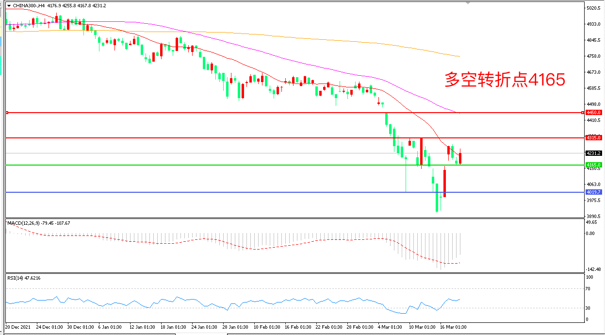 上周五(3月18日),沪指早间横盘震荡,午后在金融股助力下拉升,沪深300延续上行走势,收报4231.2点。两市合计成交9905亿元,北线资金净买入84.57亿元。短期A股在连续大跌之后高层联手强力托市政策底已出,虽然指数不会天天暴涨,但多头已经具备了发挥的空间,日内延续上行概率较大。