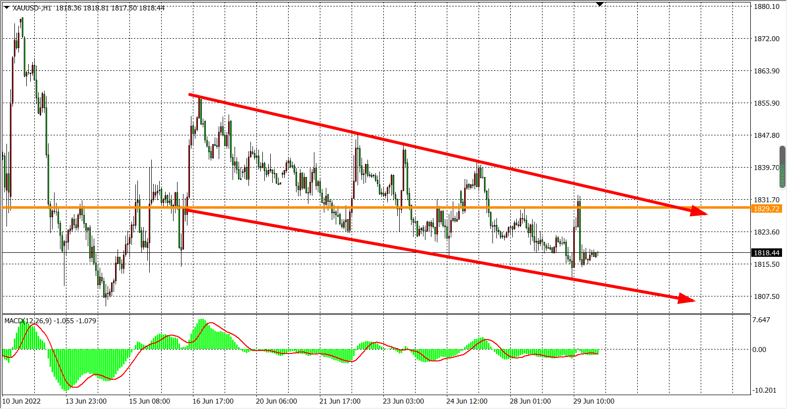 交易策略:在1830.00之下看跌,目标1810.00 1800.00