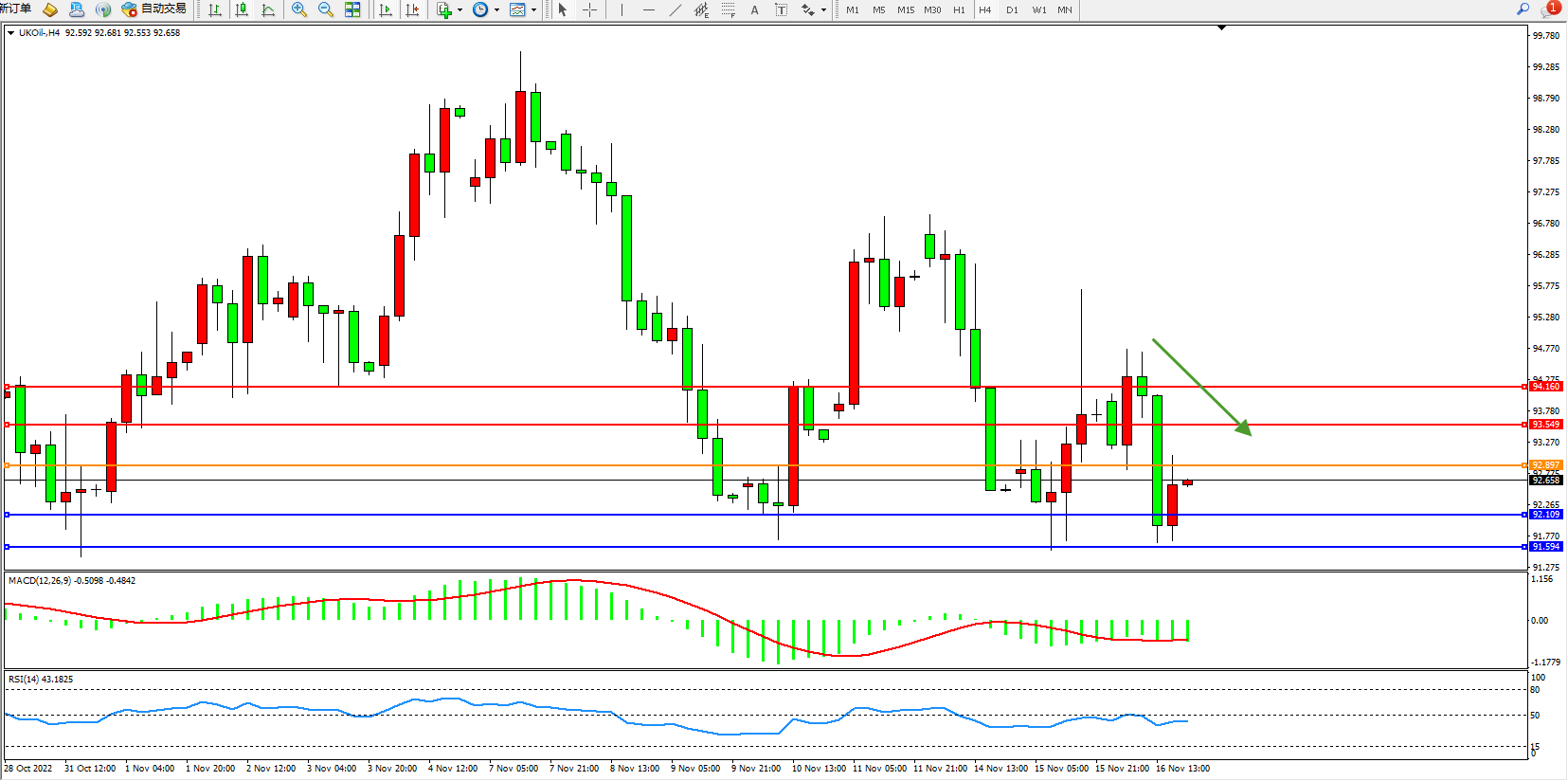 布油UKOil——4小时K线图显示: