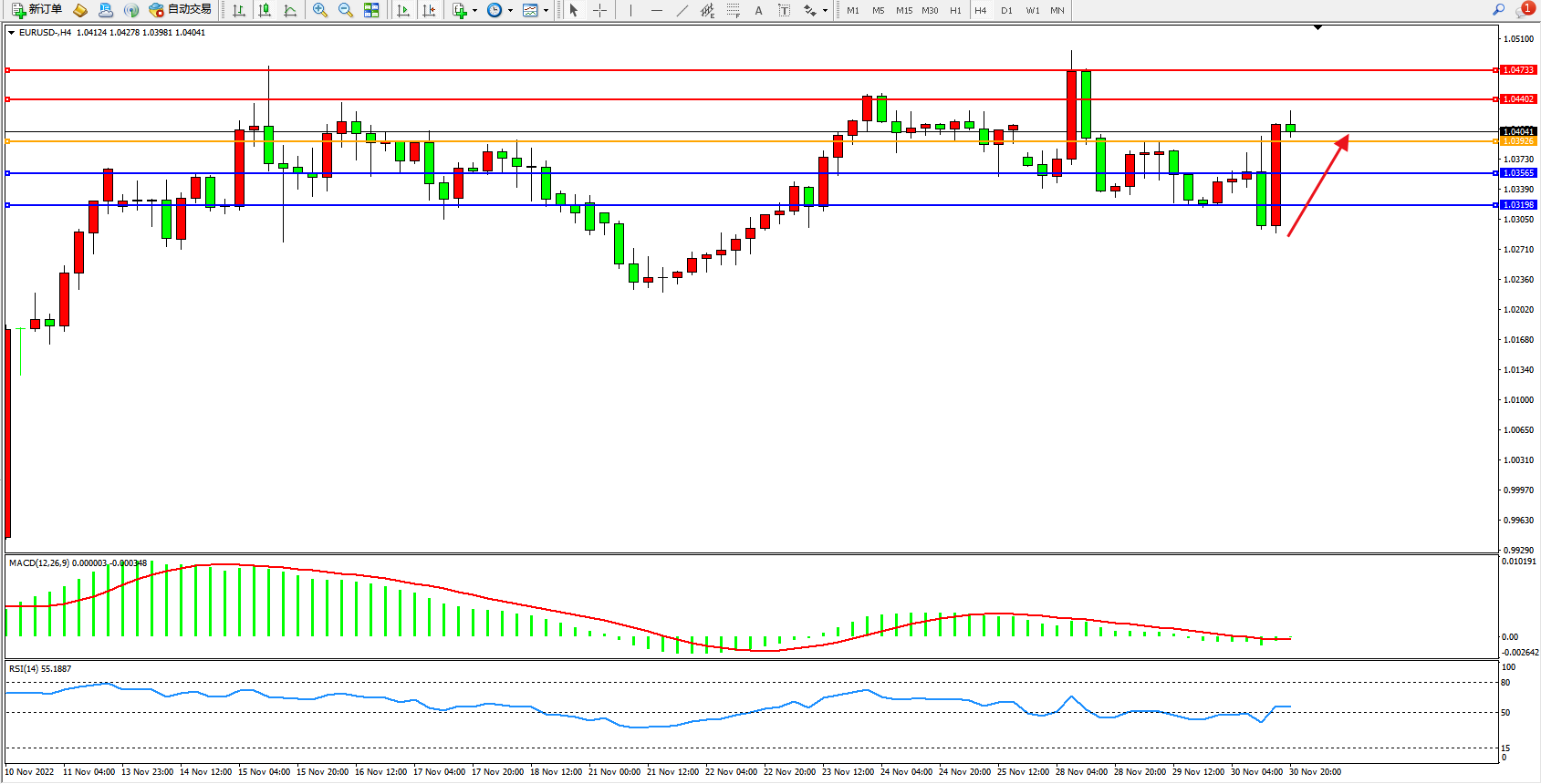 欧元兑美元维持1.04041附近震荡,欧洲放缓的通胀数据,为那些希望欧洲央行放慢加息步伐的人提供了理由,只不过欧央行上至行长下至管委委员们,在近期的表态中尚未流露出这样的情绪,还是宣称压制通胀是其首要考虑的选项。这一切还是要等到12月份欧美各自在利率会议上的表现方可看清该货币对下一步的清晰走向。
