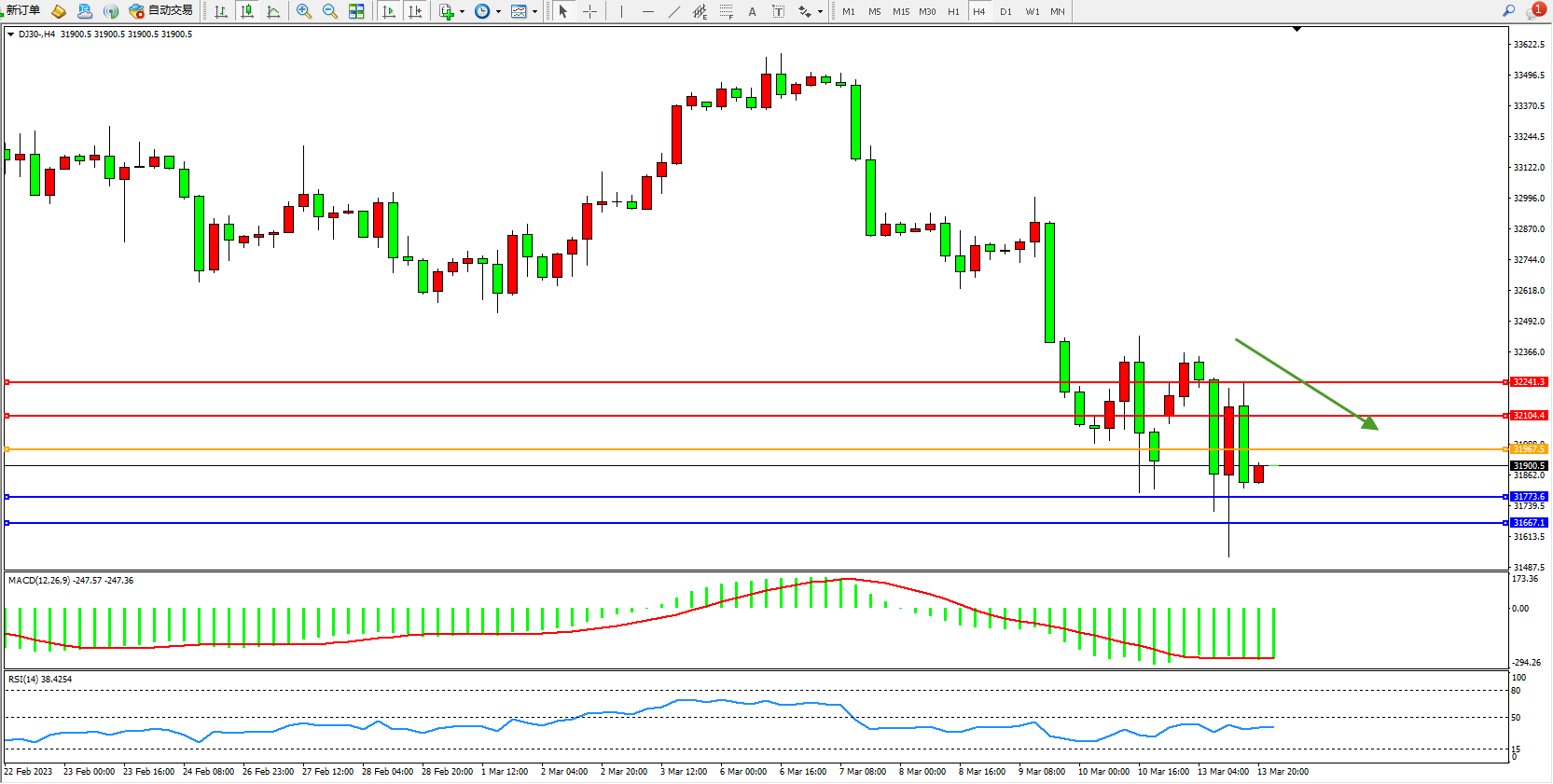 道琼斯指数3月13日(周一)收盘下跌90.59点,跌幅0.28%,报31819.05点;美联储利率掉期显示,最可能出现的情况是美联储不再加息,交易员认为美联储3月维持利率不变的可能性为54%,加息25个基点的可能性为46%。