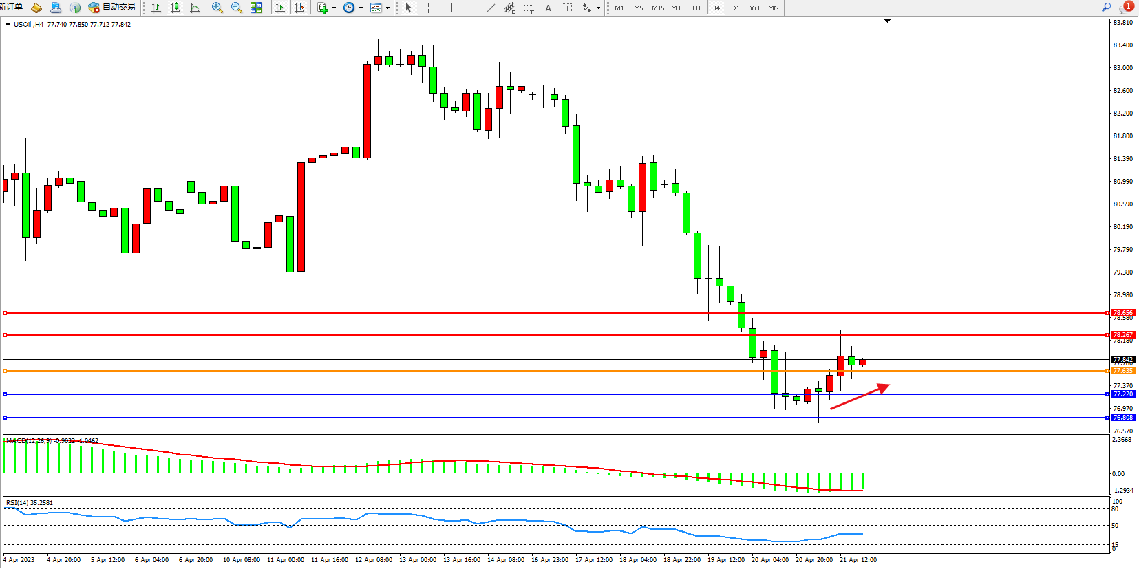 原油维持77.842附近震荡,在美国经济数据疲软以及加息预期引发市场对经济衰退可能削弱石油需求的担忧后,市场情绪仍然看跌。