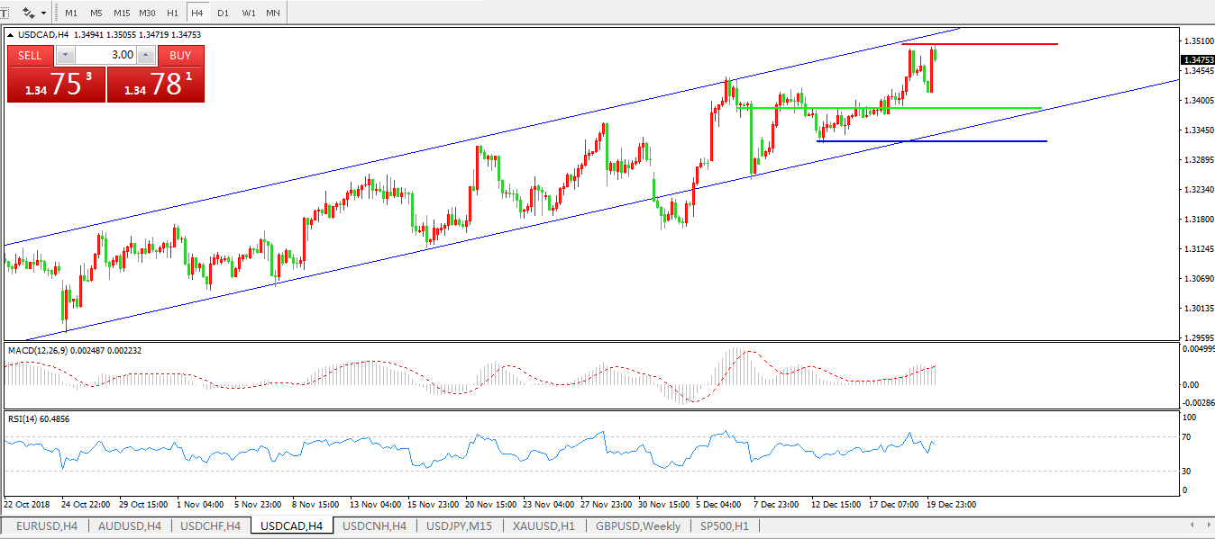美元兑加元USDCAD4小时图